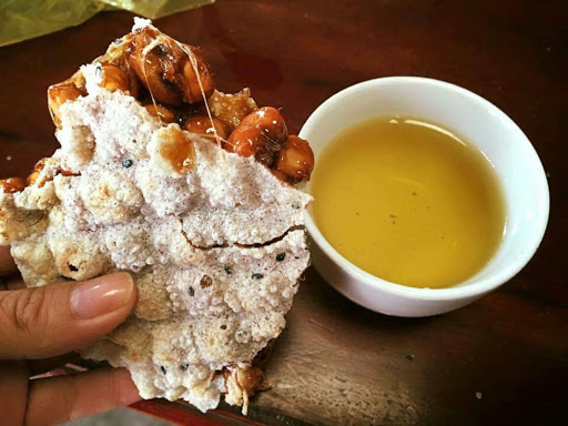 Each piece is a masterpiece of texture and flavor: a sticky, deep-amber molasses filling embraces roasted peanuts and spicy ginger shreds, all held together by two crunchy, toasted rice crackers (bánh đa). It is a perfect balance of sweet, nutty, and spicy that has become a “must-try” for anyone traveling through the North Central coast of Vietnam.